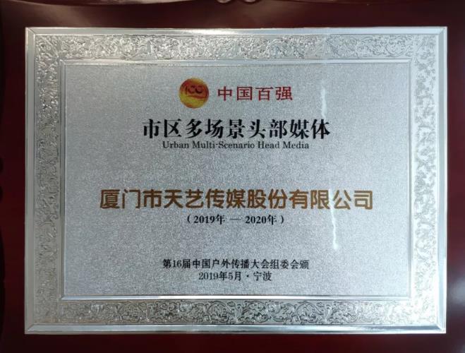 喜訊:天藝天傳媒榮獲 “中國百強(qiáng)市區(qū)多場景頭部媒體”榮譽(yù)